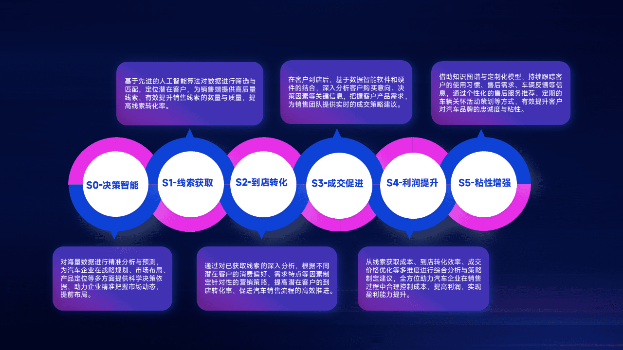 通过拓宽潜在客户来源、、优化线索分配并提高到店转化率,,以增强销售效率。。。。同时,,利用线索数据不断优化分析模型,,有效提升转化率,,,,扩大营销影响力。。。。